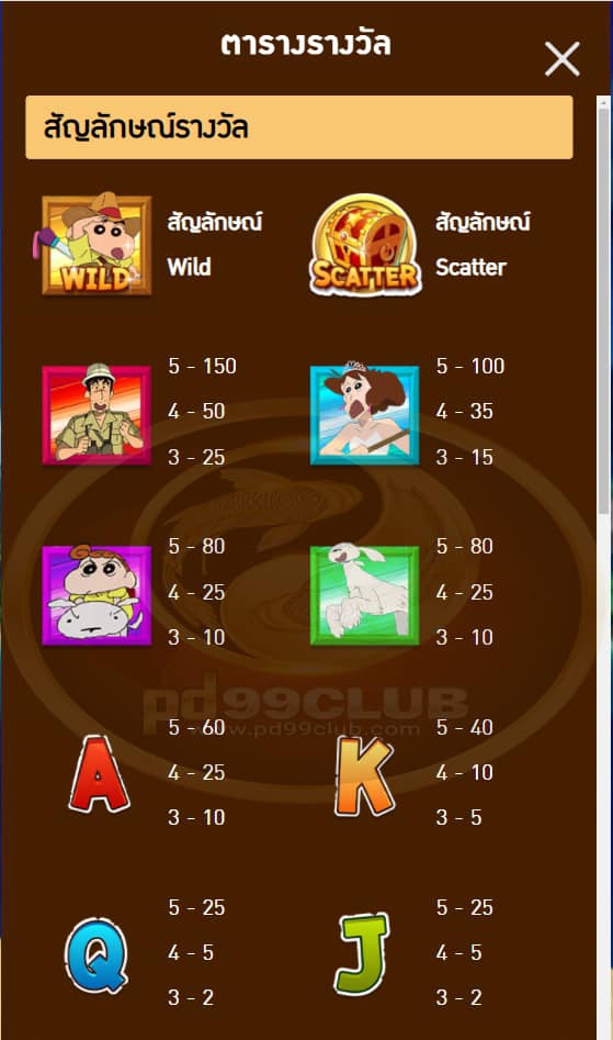 ตารางรางวัลเกม Jin Sung ชินจังสล็อตจอมแก่น