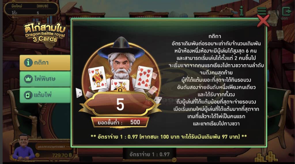 รายละเอียดเกม ตีไก่ 3 ใบ