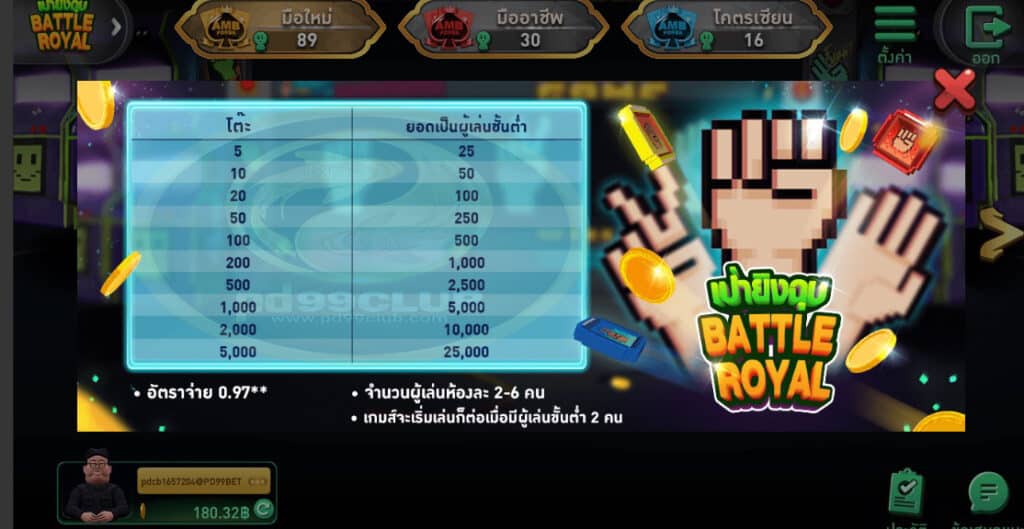 - ราคาโต๊ะ เกมเป่ายิงฉุบ Battle Royal ตามรูปตารางด้านบน
