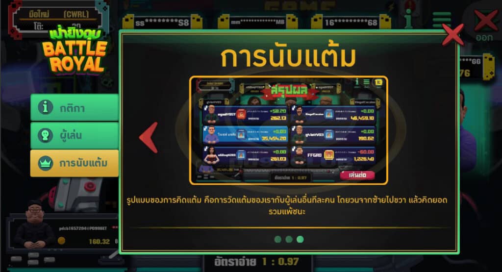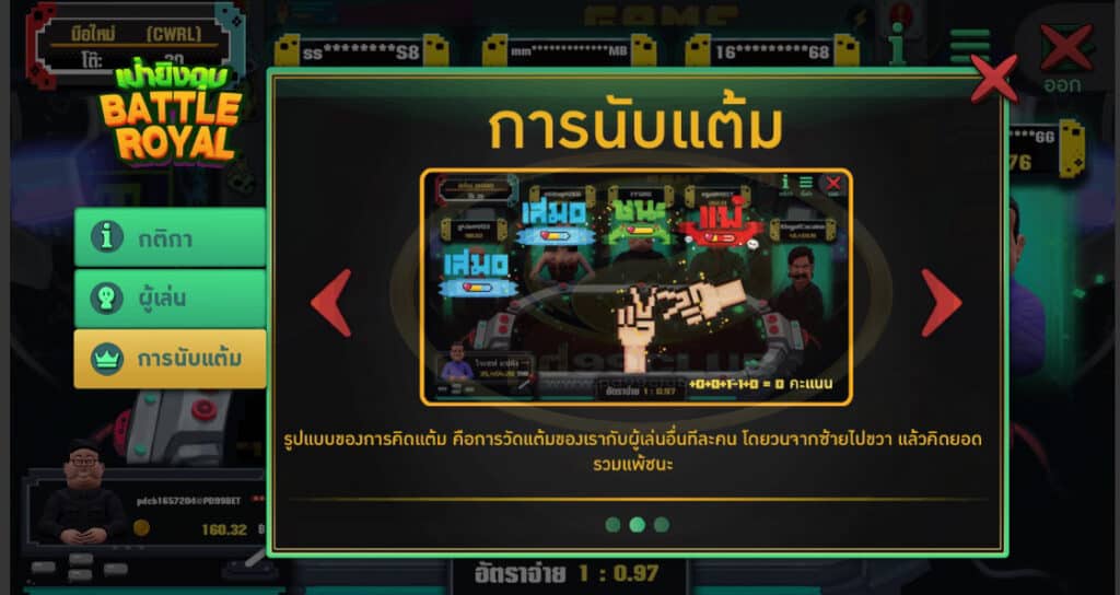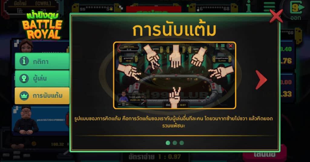 การนับเเต้ม เกมเป่ายิงฉุบ Battle Royal