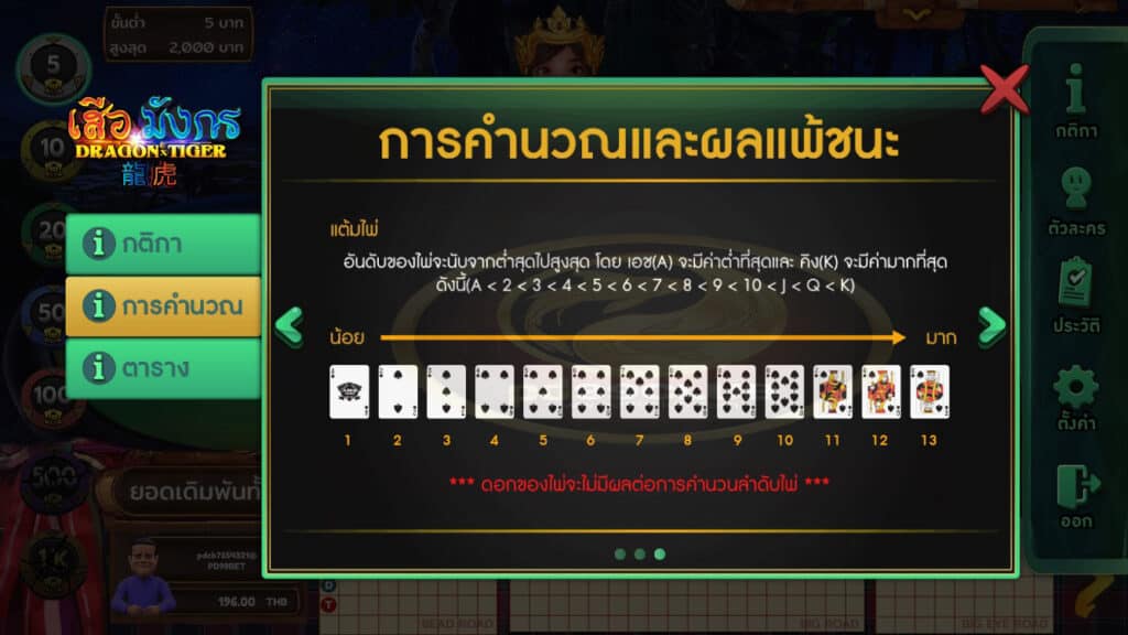 กติกาเกม เสือมังกร