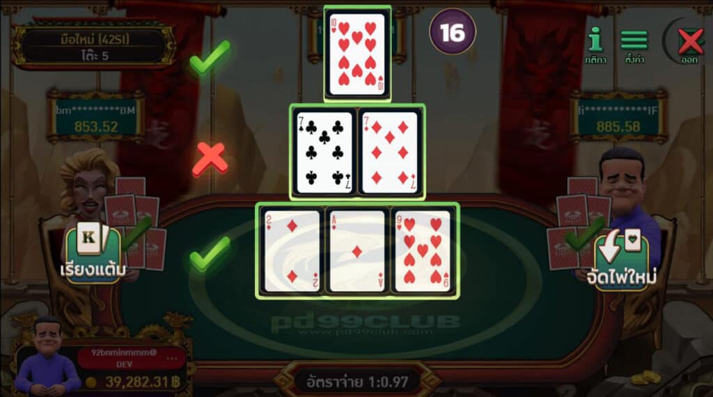 เข้าโต๊ะเกมไพ่สามกอง 6 ใบ