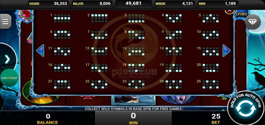 สัญลักษณ์ Wild ใช้แทนสัญลักษณ์ทั้งหมดยกเว้น Free Spin Scatter & Jackpot Scatter