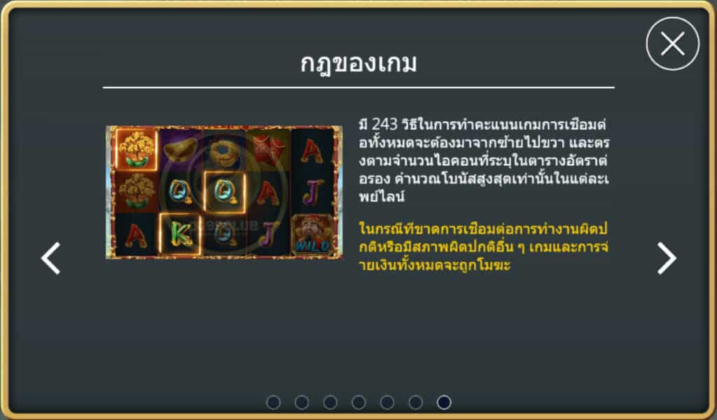 Wild ใช้แทนสัญลักษณ์ทุกตัว ยกเว้นสัญลักษณ์ Free Game