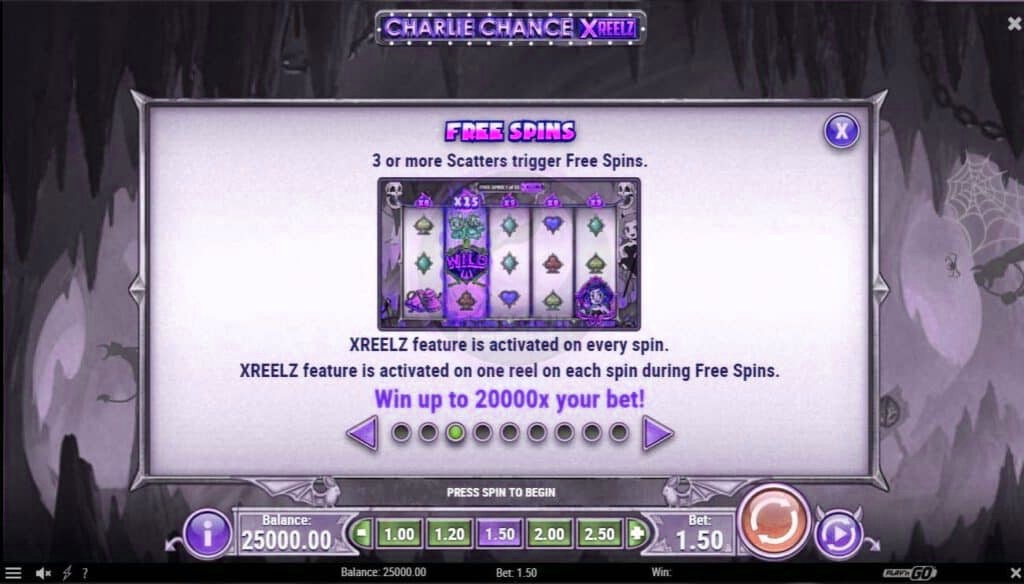 อาจดูคล้ายกันแต่นี่เป็นโอกาสที่ Charlie Chance แตกต่างจากที่เราพบในครั้งก่อนมาก ความโง่เขลาและหยิ่งผยองหายไปแล้วแทนที่ด้วยสิ่งที่หนักกว่าเข้มกว่า และจริงจังกว่ามากอะไรก็ตามที่ชาร์ลีทำก็ได้สะกิดใจหญิงสาวในโลกใต้พิภพจริงๆ และเธอก็หมายถึงธุรกิจ ส่งผลให้ประสบการณ์ที่โชคดีน้อยกว่าที่เคยพบมาก่อน ผลตอบแทนสำหรับผู้เล่นจากการปรับทัศนคติเป็นเกมที่ผันผวนมากขึ้น เต็มไปด้วยรางวัลที่มากกว่ามากมาย Charlie Chance XreelZ ให้ความรู้สึกเหมือนช่วงทศวรรษที่ 1930 เหมือนเดิม แม้ว่าจากจุดนั้น ความคล้ายคลึงจะสิ้นสุดลง และเป็นเกมบอลรูปแบบใหม่ทั้งหมด กลไกของ XreelZ นั้นค่อนข้างมีประสิทธิภาพ แม้ว่าโดยพื้นฐานแล้วจะเป็นตัวคูณการชนะแบบสุ่ม แต่แนวคิดที่ได้ใช้ในหลายเกมของพวกเขามันเพิ่มการอุทธรณ์ฟรีสปิน มันต้องพูดเพราะคุณรู้ว่าทุกการโจมตีจะมีขนาดใหญ่กว่าเกมหลักส่วนใหญ่แบบทวีคูณ ด้วยตัวคูณ x25 ที่ซุ่มซ่อน