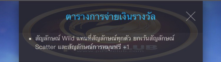 - เงินรางวัลที่มีสัญลักษณ์ Wild อยู่ด้วยจะคูณเพิ่มด้วย x2 ยกเว้นในระหว่างฟีเจอร์พร Wild