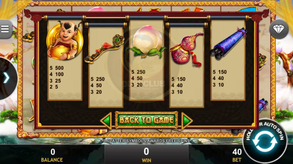 ไอคอนที่เหมือนกันมากกว่า 3 อัน จะปรากฏขึ้นในสามแกนที่ต่อเนื่องกัน คุณสามารถรับโบนัสที่ชนะสำหรับไอคอนนี้