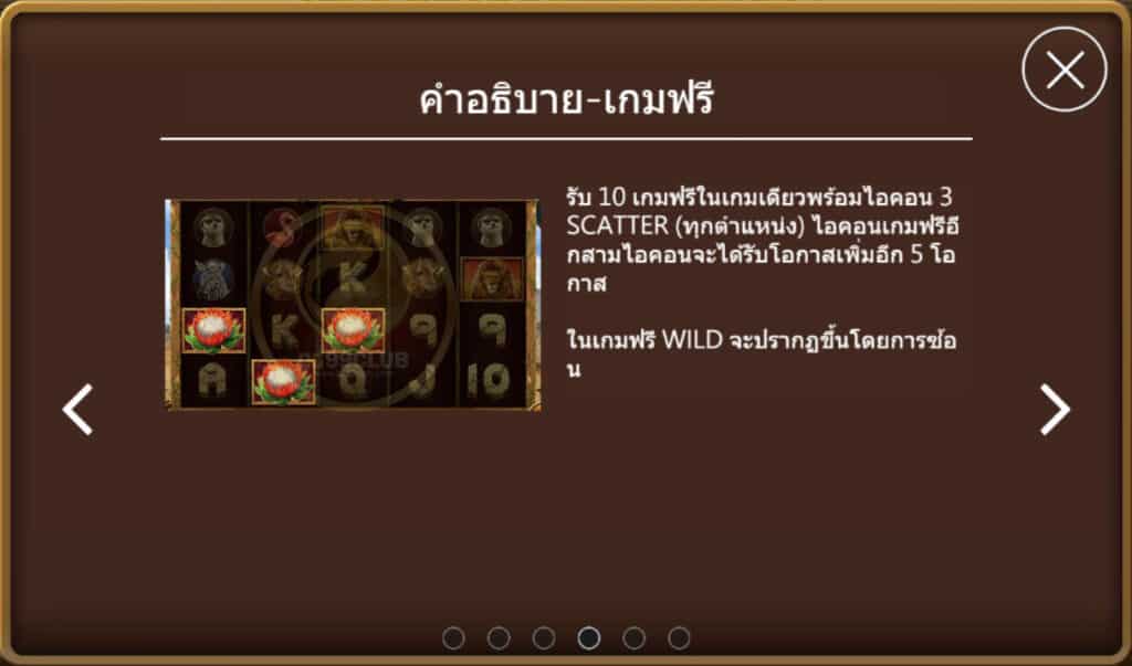 สัญลักษณ์ Scatter ปรากฏบนวงล้อที่1,2 และ3 เท่านั้น รับ 10 เกมฟรีในเกมเดียวพร้อมไอคอน 3 Scatter