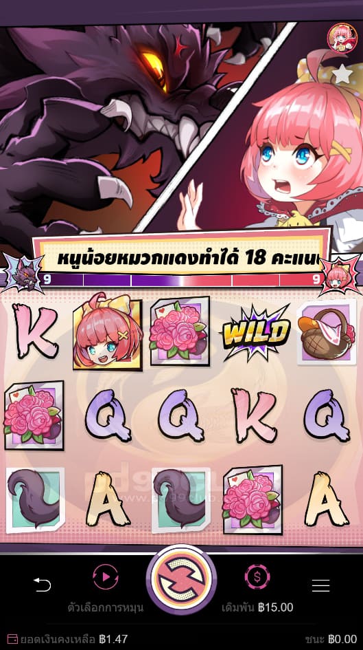 จะเล่นฟีเจอร์หมาป่าและฟีเจอร์หนูน้อยหมวกแดงด้วยขนาดและระดับเดิมพันเดียวกับที่เริ่มฟีเจอร์นั้น