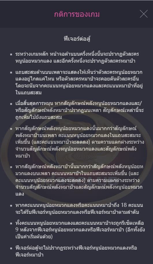 กติกา ฟีเจอร์เป๋ายิ้งฉุบเล็ก และกติกา ฟีเจอร์หมาป่า
