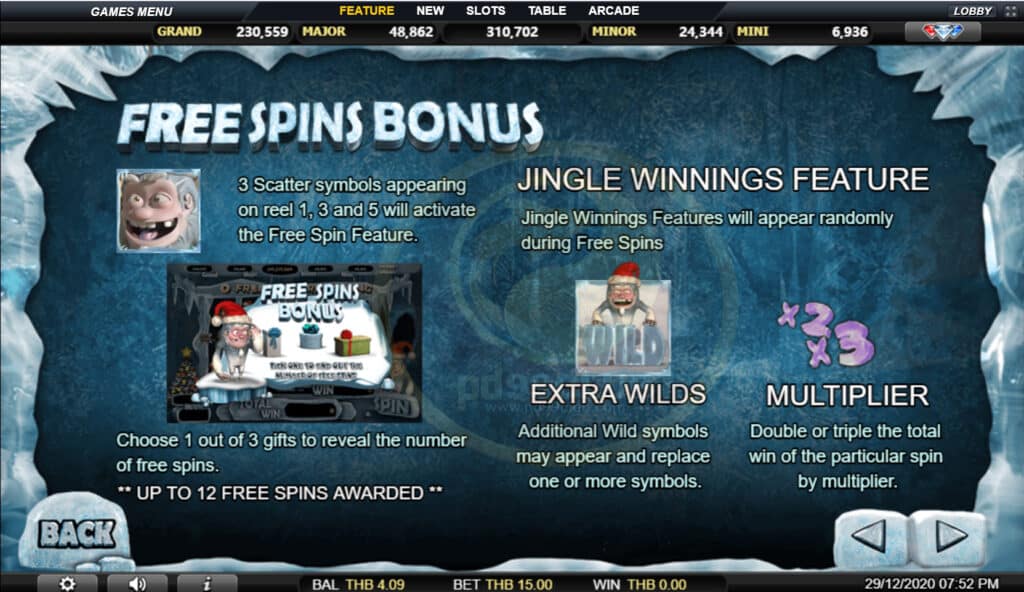 สัญลักษณ์ Jingle Winnings Feature จะปรากฏแบบสุ่มในช่วงโหมดเกมฟรีสปิน