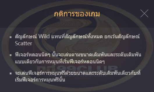 จะเล่นฟีเจอร์การหมุนฟรีด้วยขนาดเเละระดับเดิมพันเดียวกันที่เริ่มฟีเจอร์ฟรีนั้น