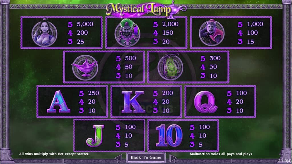 สัญลักษณ์อัตราการจ่ายของเกม Mystical Lamp