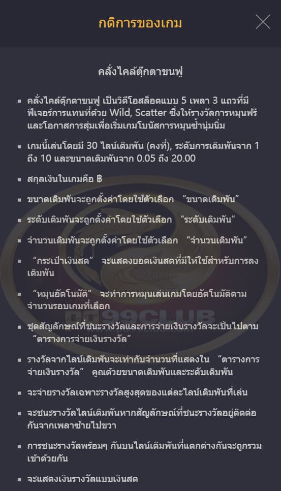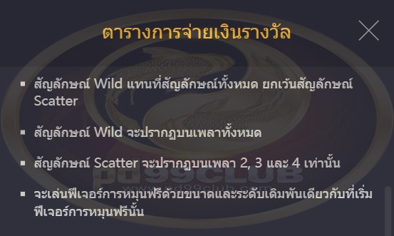 - จะจ่ายรางวัลสูงสุดของเเต่ละเพย์ไลน์เดิมพันที่เล่น