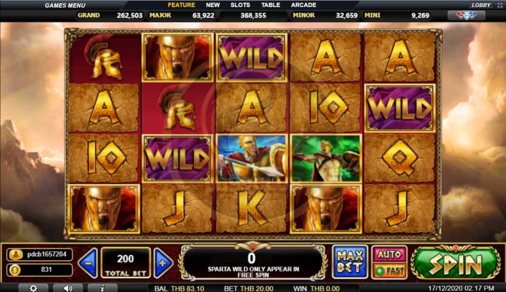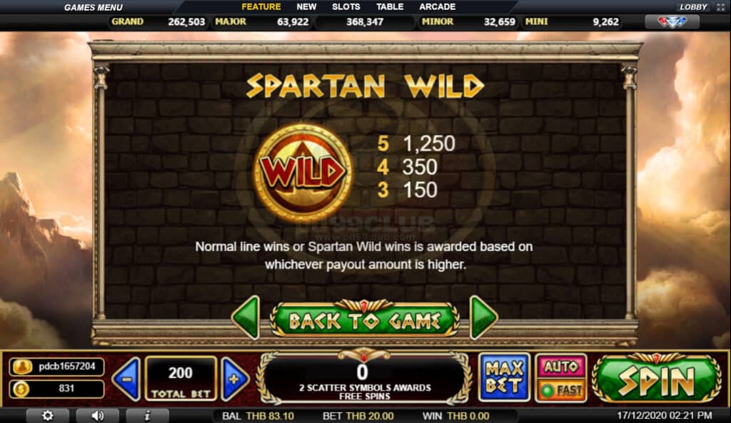 สัญลักษณ์ Spartan Wild การชนะในไลน์ปกติหรือการชนะของ Spartan Wild จะได้รับตามจำนวนเงินที่จ่ายจะสูงกว่า