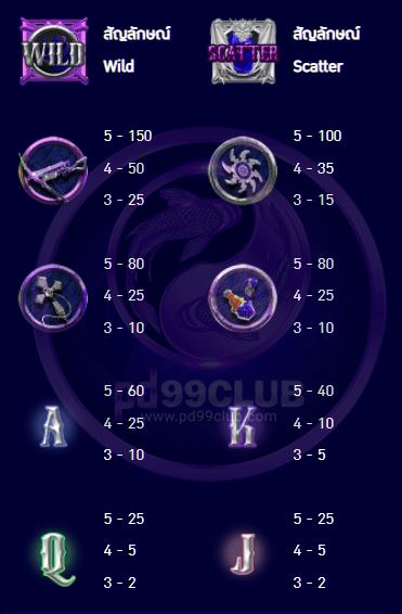 - สัญลักษณ์ภายในเกมจะมี 10 สัญลักษณ์