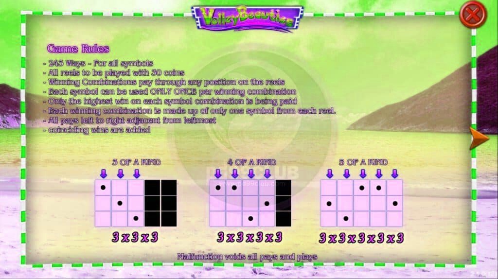 - ฟรีสปินเริ่มต้นเมื่อสิ้นสุดวอลเลย์บอลโบนัสราวนด์