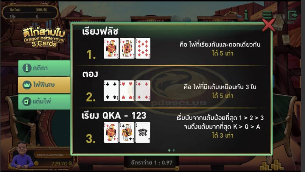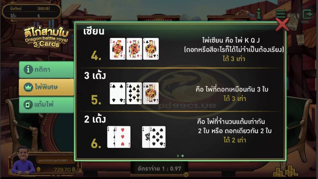 ไพ่พิเศษของเกม ตีไก่ 3 ใบ