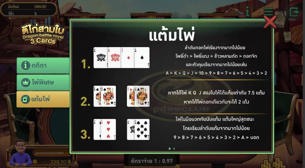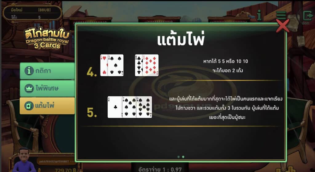 รายละเอียดเกม ตีไก่ 3 ใบ