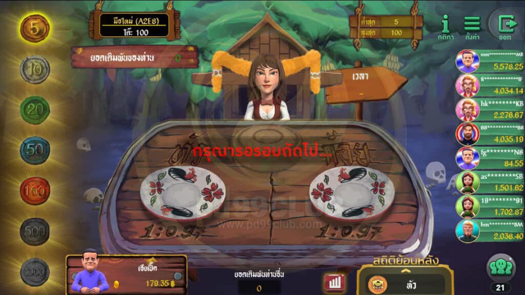 - เมื่อผู้เล่นเลือกห้องเรียบร้อยเเล้ว ให้ผู้เล่นรอเดิมพันรอบหน้าเพื่อไม่ให้เกิดปัญหาลงทุน