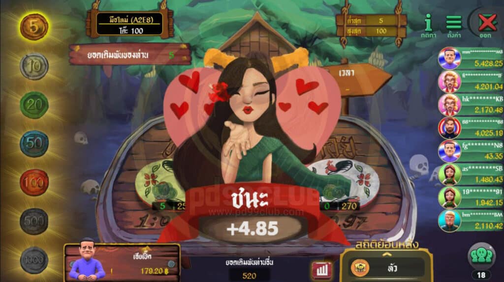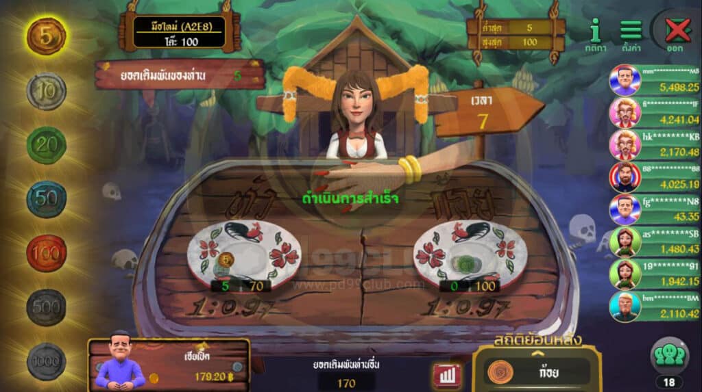 - ระบบจะดำเนินการเดิมพันต่อไป โดยจะมีอนิเมชั่นการทายปั่นแปะให้ผู้เล่นลุ้นก่อนที่จะเปิดผลรางวัล