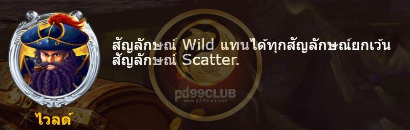 • สัญลักษณ์ Wild (ไวด์) เป็นกัปตันเขียนว่าไวด์ เป็นสัญลักษณ์พิเศษที่สามารถแทนได้ทุกสัญลักษณ์ในช่องไลน์ที่ขาดยกเว้น Scatter ที่ไม่สามารถแทนได้ช่วยเพิ่มโอกาสการแตกให้ง่ายขึ้น