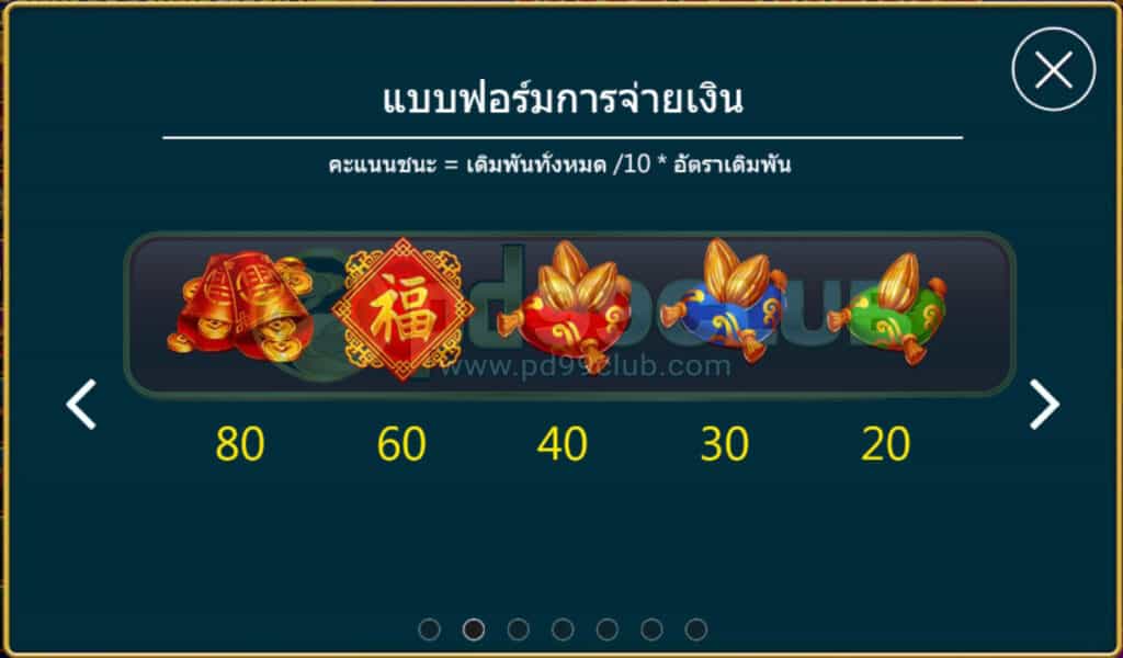 คะเเนนชนะ=เงินเดิมพันทั้งหมด/10*อัตราเดิมพัน