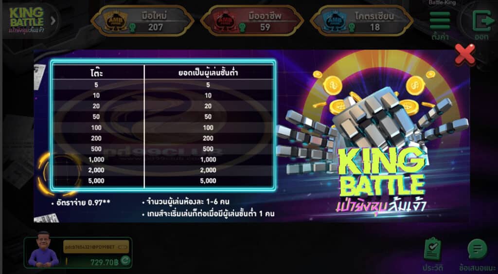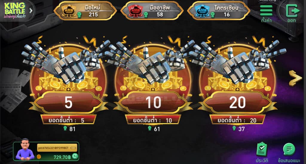 กติกาของเกม ราคาโต๊ะของเกม เป่ายิงฉุบล้มเจ้า