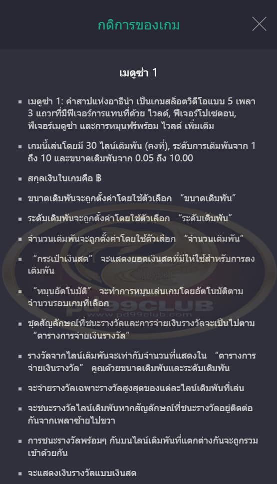 • ไลน์เดิมพันที่ชนะรางวัลมีทั้งหมด 30 ไลน์เดิมพัน