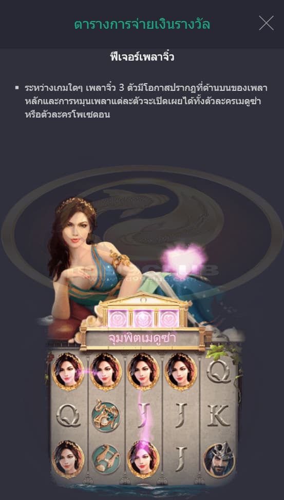 • หากสัญลักษณ์ Medusa/Poseidon 24 อันถูกเพิ่มไปยังเมนูพิเศษะถือว่าผ่านเกณฑ์ความสำเร็จแรกของมิเตอร์พิเศษ จากนั้นจะมอบรางวัลผู้เล่นเป็น 5 เท่าของเดิมพัน