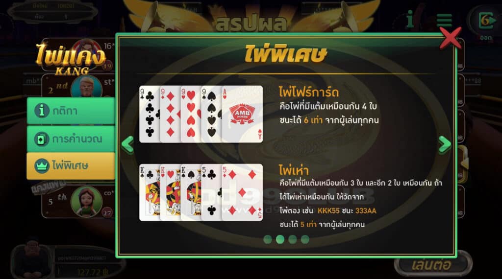 ไพ่พิเศษ เกมไพ่แคง