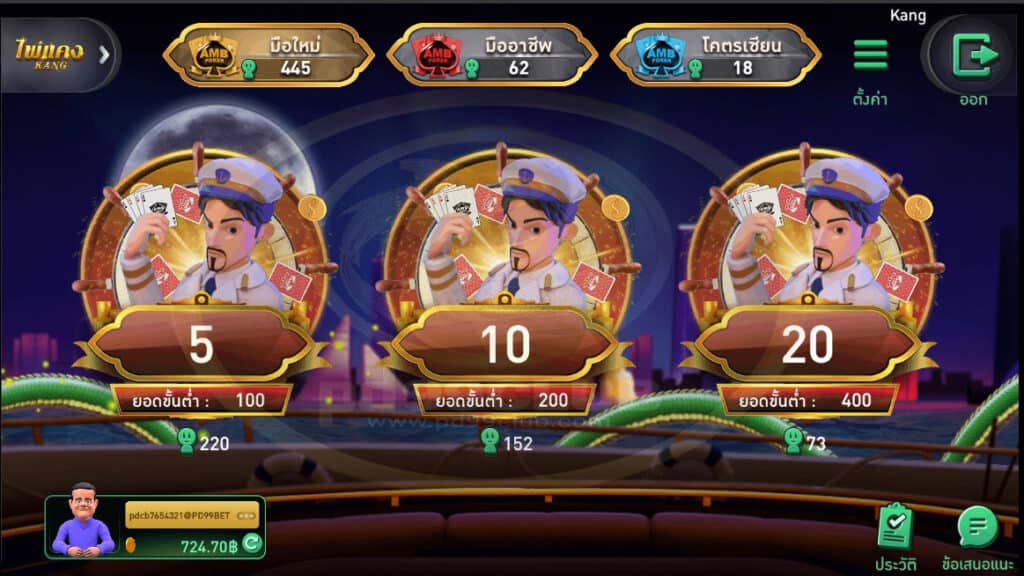 เลือกห้องคลาสเกมไพ่เเคง