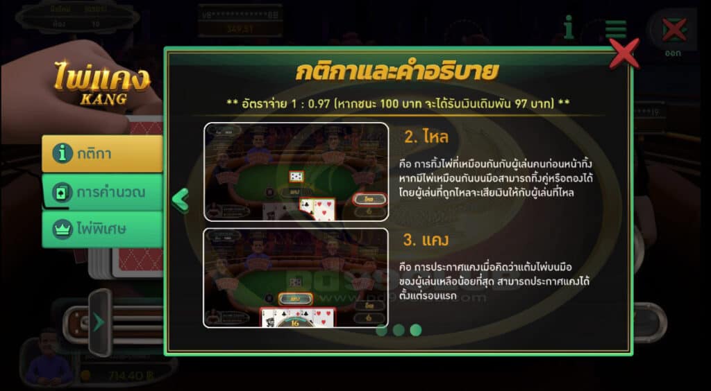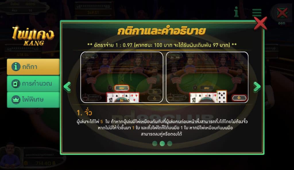 อัตราจ่ายเกมไพ่เเคง