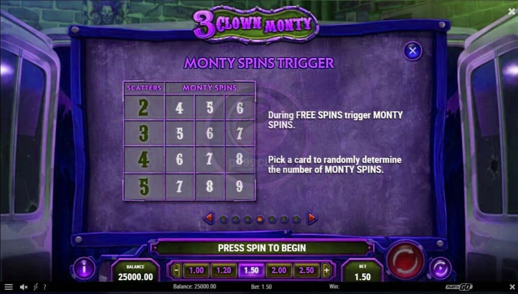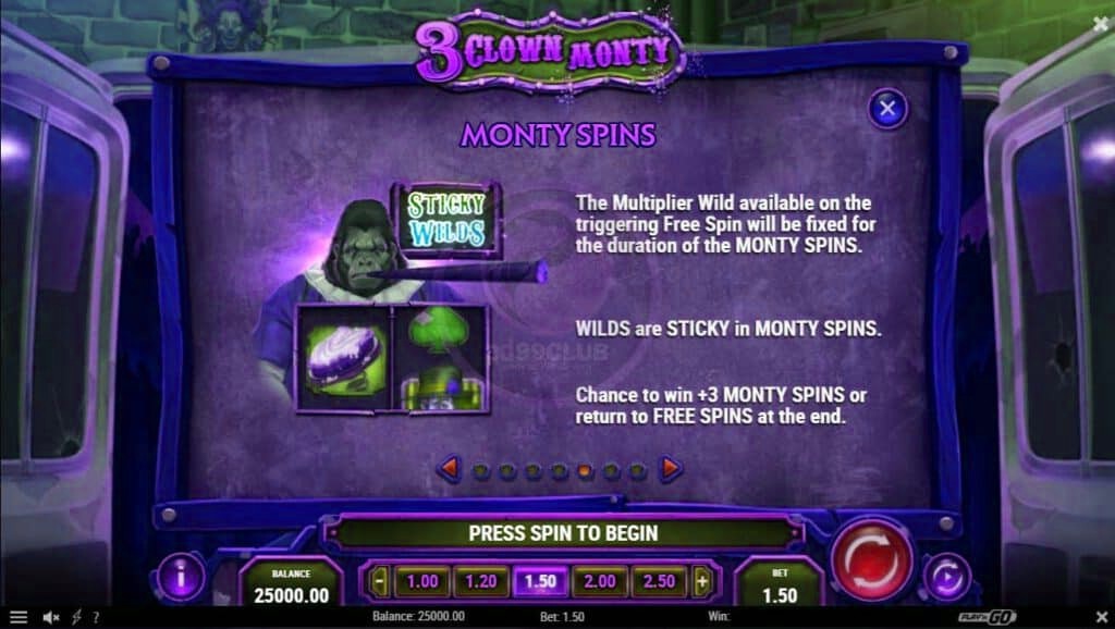 - มีโอกาสชนะ Monty Spins เพิ่ม 3 ครั้งหรือกลับไปที่ Free Spins เมื่อจบรอบ