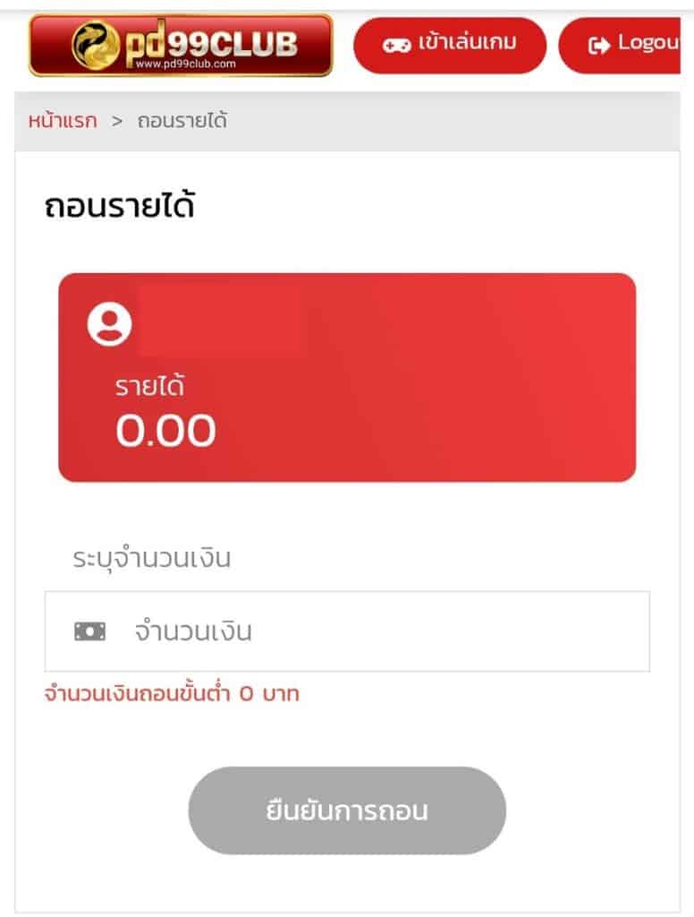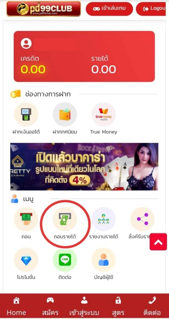 1.เมนูถอนรายได้ จะแสดงรายได้ของเราโดยจะถอนได้ สัปดาห์ละครั้งเท่านั้น