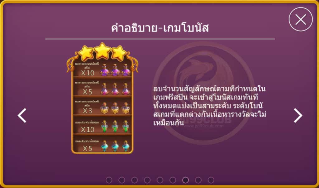 ลบจำนวนสัญลักษณ์ตามที่กำหนดในเกมฟรีสปิน จะเข้าสู่โหมดโบนัสเกมทันทีทั้งหมดแบ่งเป็นสามระดับ ระดับโบนัสที่แตกต่างกันเนื้อหารางวัลจะไม่เหมือนกัน