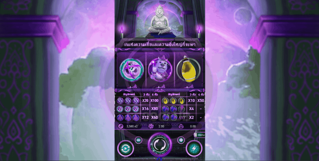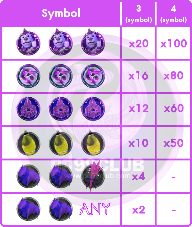 - ตัวอย่างเมื่อผู้เล่นชนะ 4 สัญลักษณ์คูณจะ x5 จากปกติ