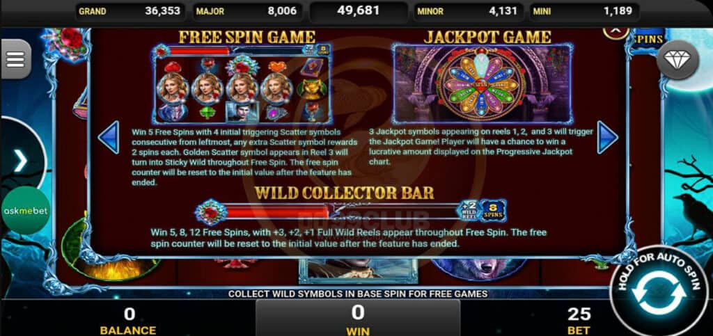 สัญลักษณ์ Free Spin Game,Jackpot Game และ Wild Collector Bar
