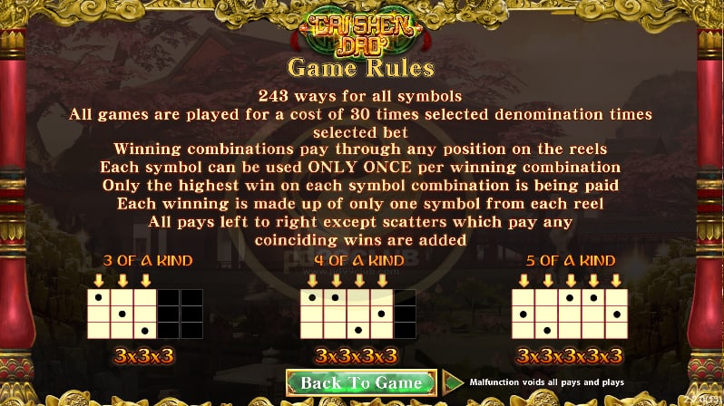 กฏกติกาของเกม Cai Shen Dao