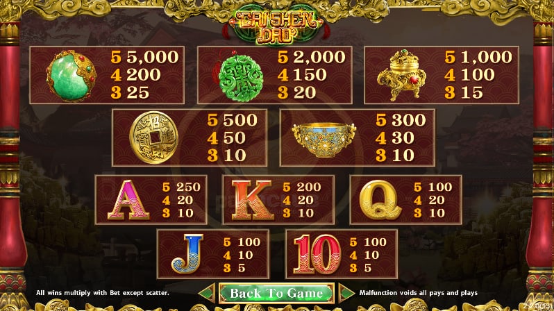สัญลักษณ์อัตราการจ่ายของเกม Cai Shen Dao