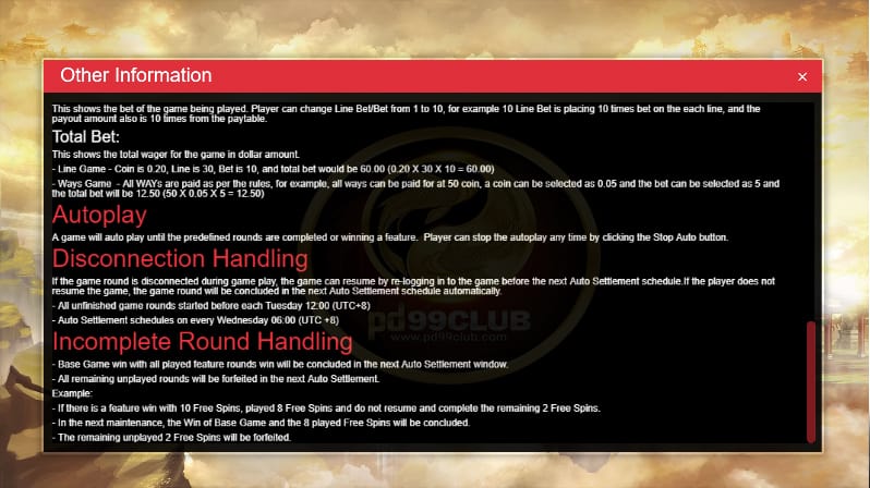 - หากเกิดข้อผิดพลาดการเล่น และการเชื่อมต่อรางวัลทั้งหมดจะถูกโมฆะ