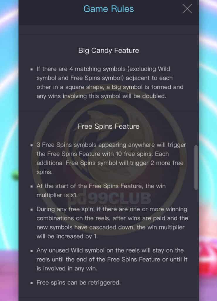 กฎของเกมฟีเจอร์ Big Candy และฟีเจอร์ฟรีสปิน
