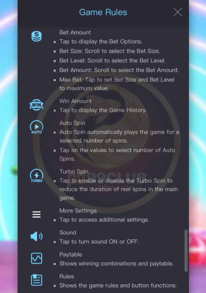 - แตะเพื่อเปิดหรือปิดTurbo Spin เพื่อลดระยะเวลาการหมุนของรีลในเกมหลัก