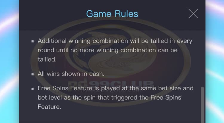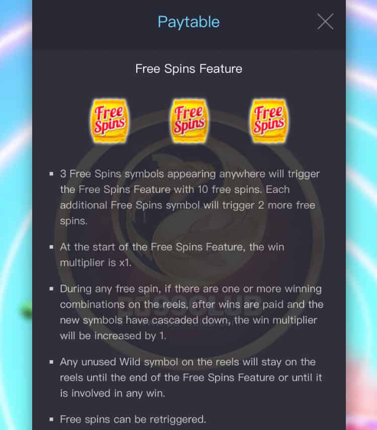 - ฟีเจอร์ฟรีสปินเล่นในขนาดเดิมพันและระดับการเดิมพันเดียวกันกับการหมุนที่เรียกใช้ฟีเจอร์ฟรีสปิน