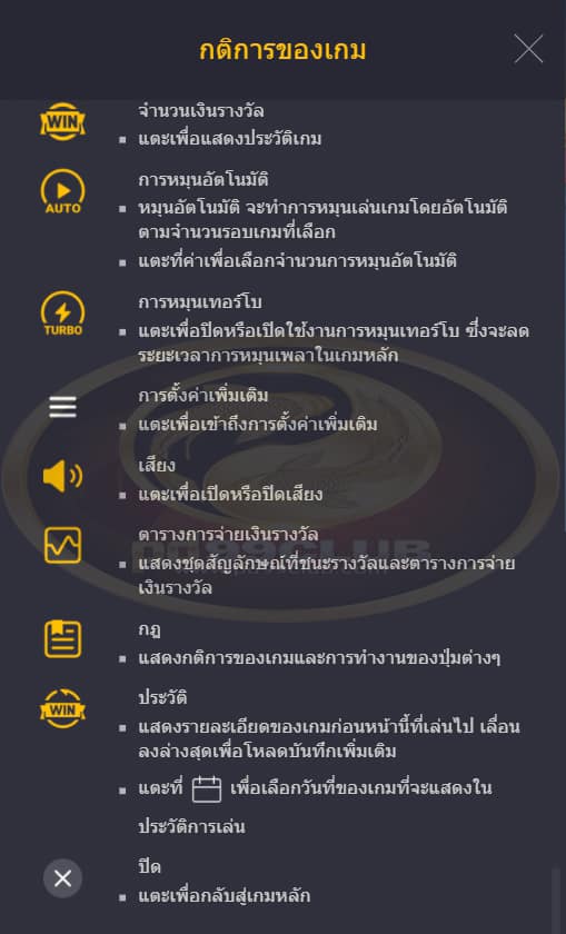 “ หมุนอัตโนมัติ” จะทำการหมุนเล่นเกมโดยอัตโนมัติตามจำนวนรอบเกมที่เลือก