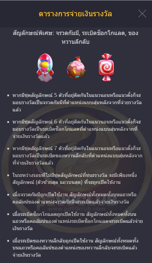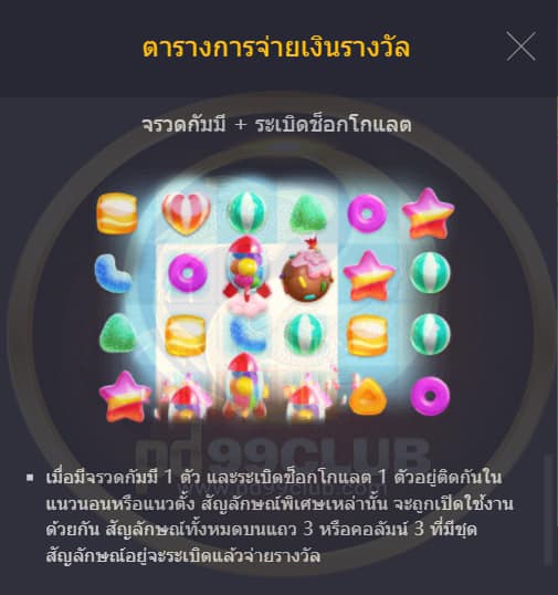 กติกา สัญลักษณ์พิเศษ:จรวดกัมมี ระเบิดช็อกโกแลต ของหวานลึกลับ
