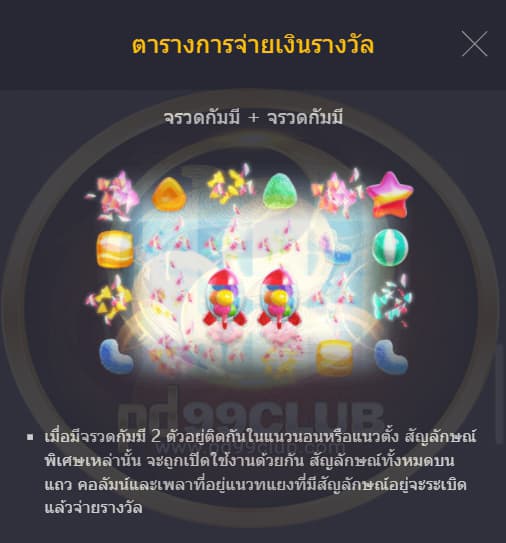 เมื่อมีจรวดกัมมี 1 ตัวเเละของหวานลึกลับ 1 ตัวอยู่ติดต่อกันในแนวนอนหรือแนวตั้งสัญลักษณ์พิเศษเหล่านั้น จะถูกเปิดใช้งานด้วยกันจะมีสัญลักษณ์หนึ่งตัวที่ถูกเลือกแบบสุ่ม แล้วสัญลักษณ์ที่ถูกเลือกทั้งหมดจะระเบิดแล้วจ่ายรางวัลสัญลักษณ์ทั้งหมดบนแถวคอลัมน์และเพลาที่อยู่แนวทแยง ที่มีสัญลักษณ์อยู่จะระเบิดเเล้วจ่ายรางวัล