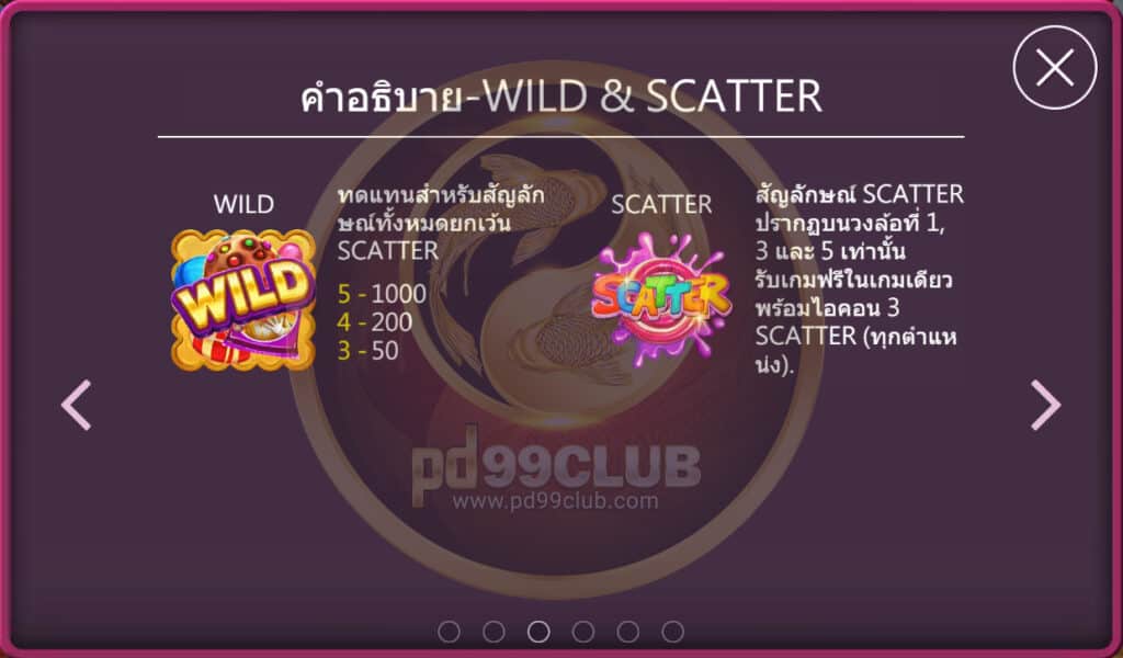 สัญลักษณ์ Wild ใช้แทนสัญลักษณ์ทุกตัว ยกเว้นสัญลักษณ์ Scatter