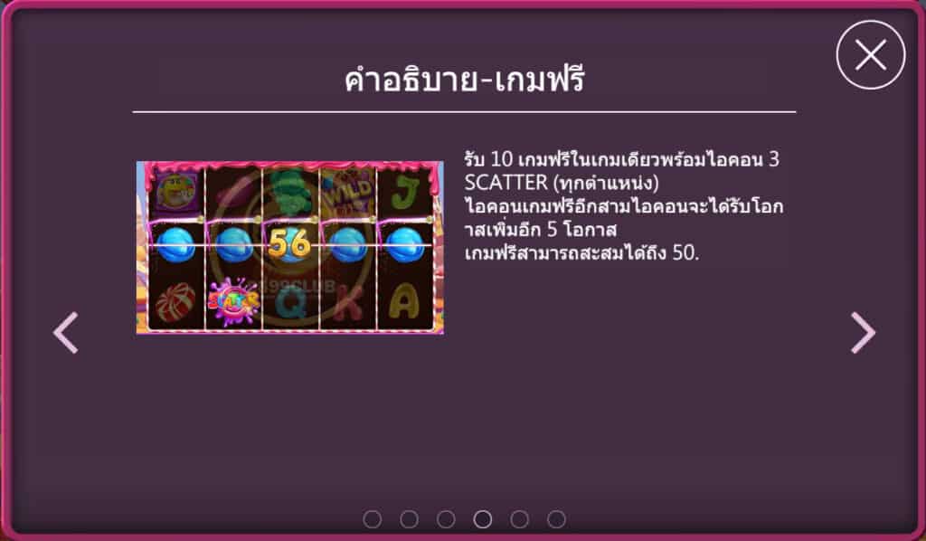 สัญลักษณ์ Scatter ปรากฏขึ้น 3, 4 หรือ 5 ตัว ในตำแหน่งใดก็ตาม จะเข้าสู่ฟีเจอร์การหมุนฟรี โดยจะได้รับหมุนฟรี 10 ครั้ง