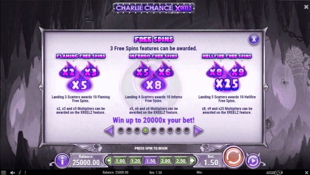 อาจดูคล้ายกันแต่นี่เป็นโอกาสที่ Charlie Chance แตกต่างจากที่เราพบในครั้งก่อนมาก ความโง่เขลาและหยิ่งผยองหายไปแล้วแทนที่ด้วยสิ่งที่หนักกว่าเข้มกว่า และจริงจังกว่ามากอะไรก็ตามที่ชาร์ลีทำก็ได้สะกิดใจหญิงสาวในโลกใต้พิภพจริงๆ และเธอก็หมายถึงธุรกิจ ส่งผลให้ประสบการณ์ที่โชคดีน้อยกว่าที่เคยพบมาก่อน ผลตอบแทนสำหรับผู้เล่นจากการปรับทัศนคติเป็นเกมที่ผันผวนมากขึ้น เต็มไปด้วยรางวัลที่มากกว่ามากมาย Charlie Chance XreelZ ให้ความรู้สึกเหมือนช่วงทศวรรษที่ 1930 เหมือนเดิม แม้ว่าจากจุดนั้น ความคล้ายคลึงจะสิ้นสุดลง และเป็นเกมบอลรูปแบบใหม่ทั้งหมด กลไกของ XreelZ นั้นค่อนข้างมีประสิทธิภาพ แม้ว่าโดยพื้นฐานแล้วจะเป็นตัวคูณการชนะแบบสุ่ม แต่แนวคิดที่ได้ใช้ในหลายเกมของพวกเขามันเพิ่มการอุทธรณ์ฟรีสปิน มันต้องพูดเพราะคุณรู้ว่าทุกการโจมตีจะมีขนาดใหญ่กว่าเกมหลักส่วนใหญ่แบบทวีคูณ ด้วยตัวคูณ x25 ที่ซุ่มซ่อน